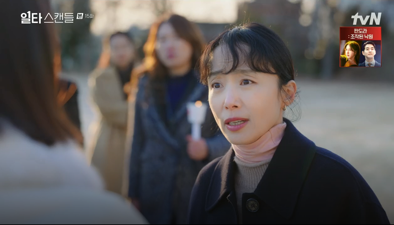 수아엄마(김선영)는 제일 앞에 나서서 시험지 유출 사건의 당사자인 선재도 처벌해야 한다고 항의했다.