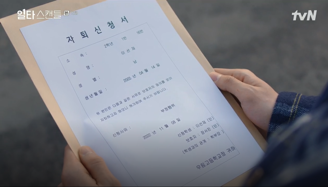 그리고 이선재는 고민 끝에 결국 자퇴를 결정한다.