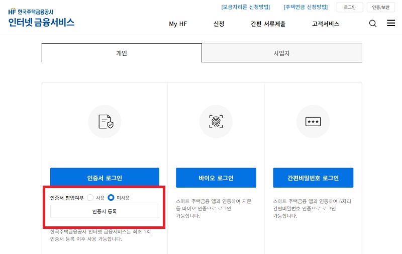 ▶금융인증서 또는 공동인증서 등록하기