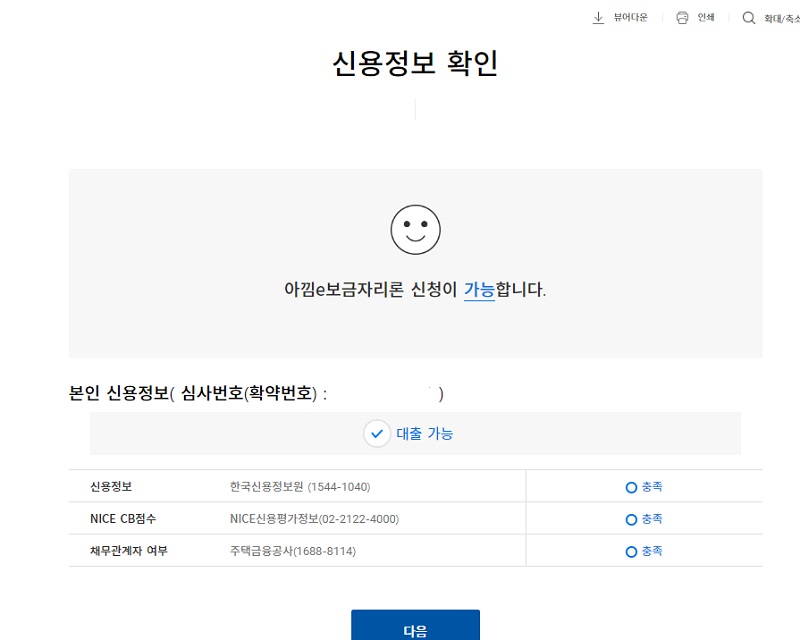 ▶신용정보 확인 완료 메시지