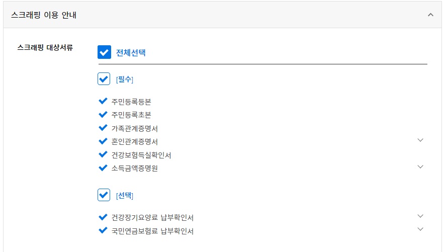 (배우자도 홈텍스, 건강보험공단, 정부 24에 공동인증서나 금융인증서 등록 후 스크래핑해야 됨)
