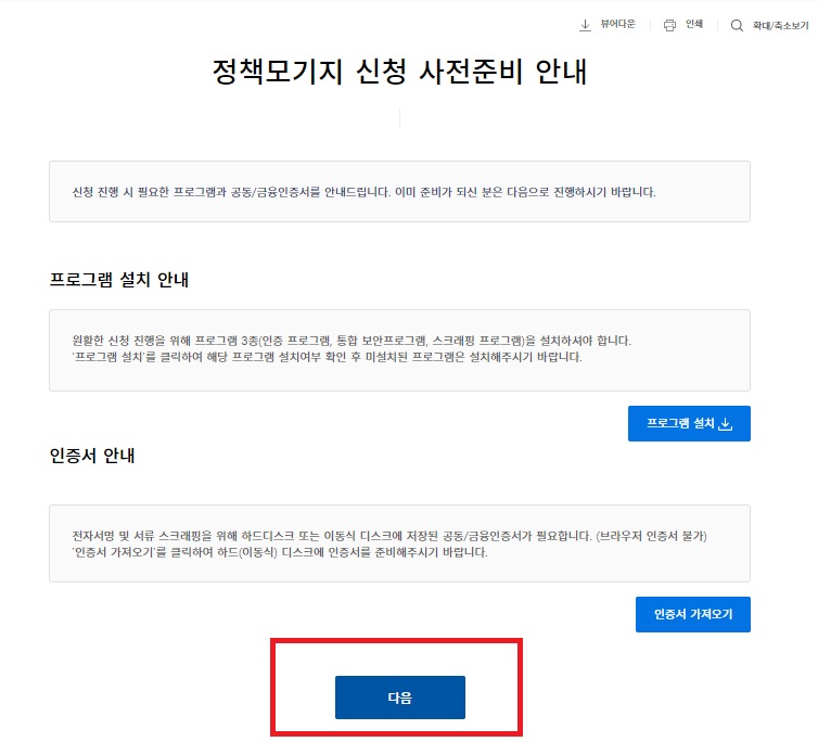▶사전준비안내 읽어보시고, 준비가 되셨으면 다음 클릭