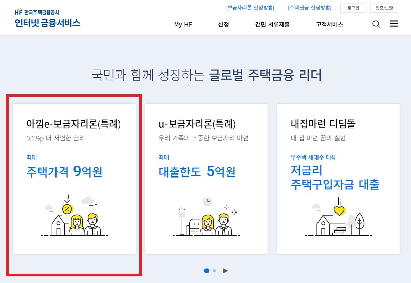 ▶아낌 e-보금자리론(특례) 클릭